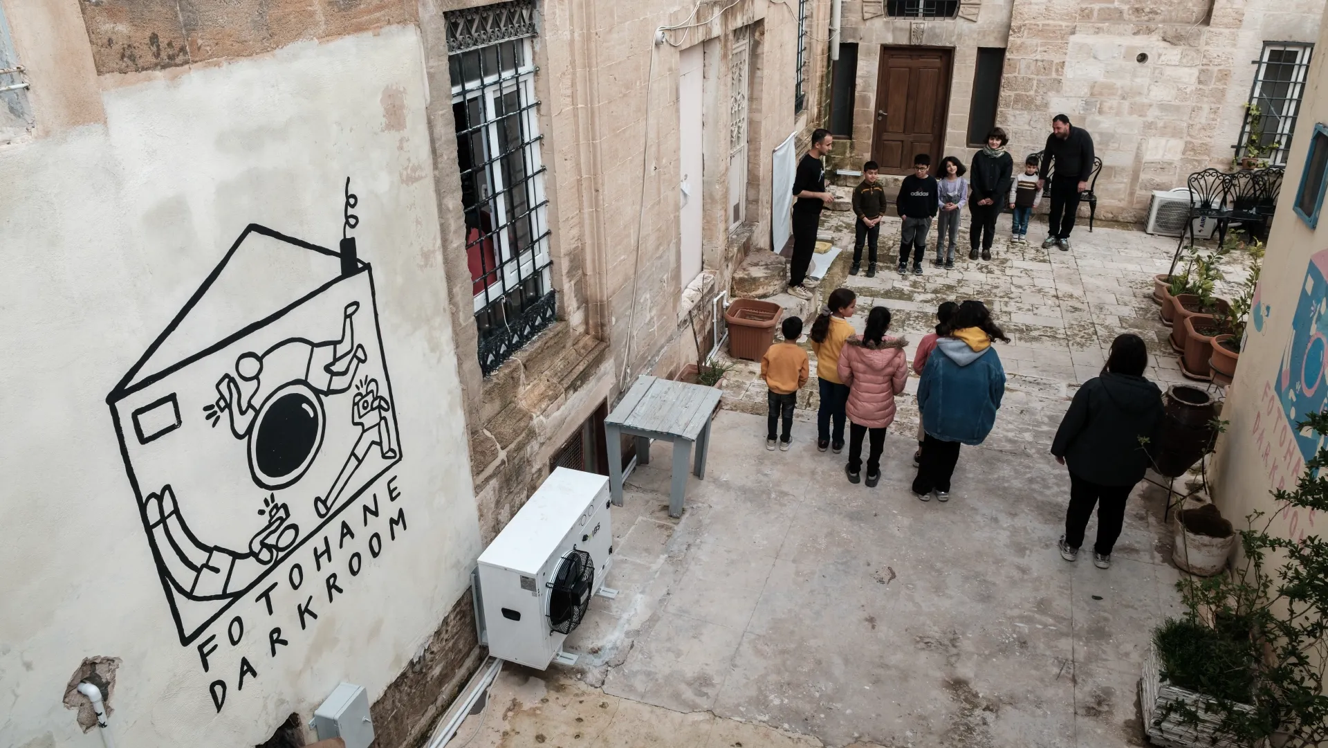 Fotohane Darkroom, Mardin’de 2024’ten beri göçmen ve dezavantajlı çocuklarla atölyeler yürüten, çocukları fotoğraf sanatıyla buluşturan bir oluşum.