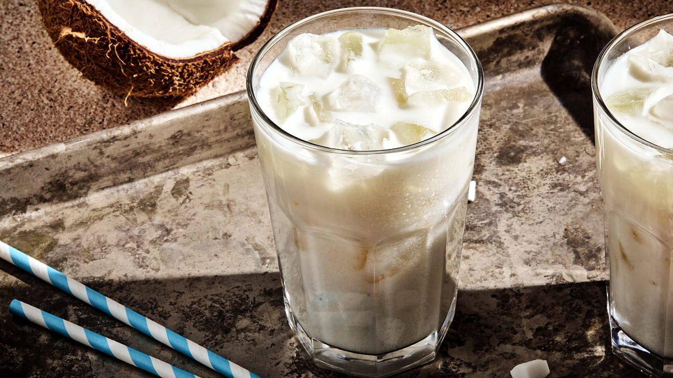 İçinde olgun muz, hindistan cevizi sütü, palmiye şekeri ve vanilyamsı bir tada sahip olan pandan bitkisinin yaprakları var.